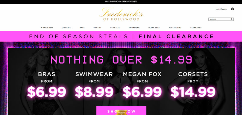 Hablando de lencería y ropa íntima para mujeres, Frederick’s of Hollywood es sin duda un sitio que hay que visitar. Tienen una amplia colección de lencería y ropa interior que también es popular entre las mejores actrices de Hollywood. Su sitio web de compras en línea ofrece buenos descuentos.