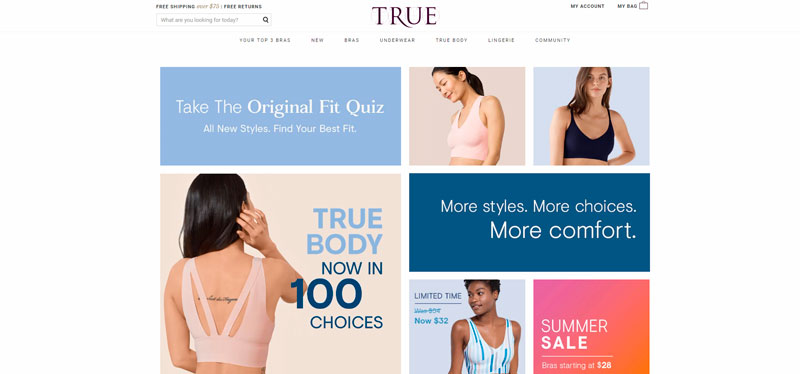 Si adoras la ropa interior ajustable, cómoda, que se adapta a la piel True & Co es tu sitio web de compras. Tienen sostenes, ropa interior, bodys y más. Uno de sus puntos fuertes, tienen tallas desde las pequeñas hasta extragrandes. Además, puedes hacer tus propios conjuntos mezclando la variedad de sostenes junto con tangas, hipster, bikinis y más.