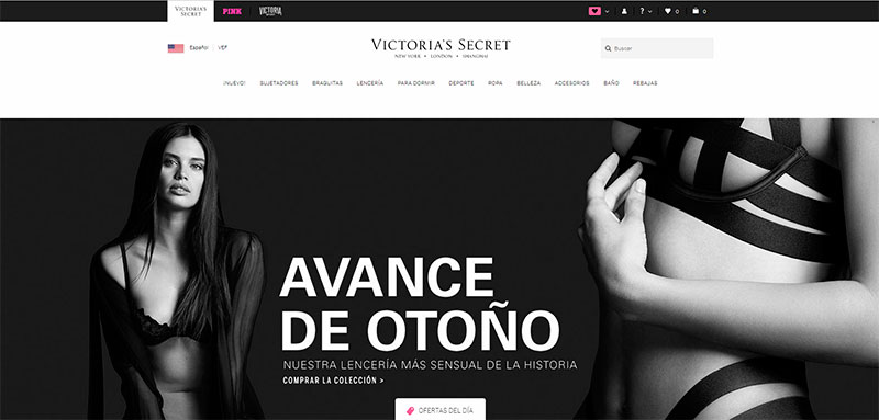 Victoria’s Secret es una de las marcas de lencería y ropa interior para mujeres, favorita en Estados Unidos. Ofrece grandes descuentos diarios y por colecciones en su amplia gama de productos femeninos. Su web se encuentra entre las más visitadas en los Estados Unidos y en otras partes del mundo.